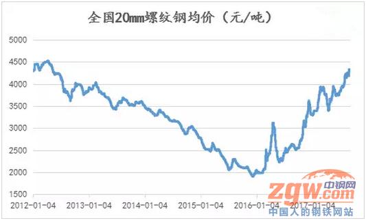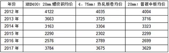 圖1:2012-2017年全國20mm螺紋鋼均價(jià)情況