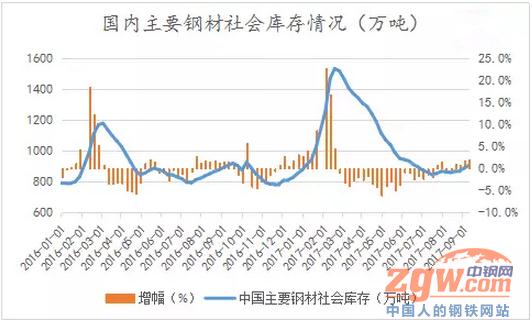 據(jù)統(tǒng)計(jì),2017年9月8日國內(nèi)主要鋼材社會(huì)庫存為906.38萬噸,環(huán)比增加18.52萬噸,增幅為2.1%,同比減少0.93萬噸,降幅為0.1%。自8月中旬以來,全國鋼材社會(huì)庫存從底部開始回升,“金九銀十”到來,商家陸續(xù)的補(bǔ)庫,庫存在短期仍將有上升空間,但由于目前庫存處于低位水平,短期內(nèi)對鋼價(jià)難以形成較大壓力。