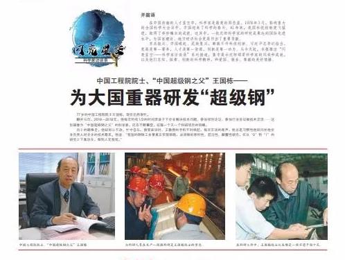 在國(guó)家“973”項(xiàng)目的支持下,與全國(guó)鋼鐵人一起研發(fā)超級(jí)鋼時(shí),王國(guó)棟帶領(lǐng)著團(tuán)隊(duì)在東北大學(xué)軋制技術(shù)及連軋自動(dòng)化國(guó)家重點(diǎn)實(shí)驗(yàn)室和寶鋼之間往來(lái)奔波,不但先于國(guó)外競(jìng)爭(zhēng)者完成了200兆帕(MPa)級(jí)別普碳鋼到400兆帕的科學(xué)研究,實(shí)現(xiàn)了強(qiáng)度的翻番,還提前近3年時(shí)間生產(chǎn)出原型鋼,并進(jìn)行了實(shí)際應(yīng)用。2004年,“400MPa級(jí)鐵素體/珠光體鋼的超細(xì)晶強(qiáng)韌化與控制技術(shù)”獲得國(guó)家科學(xué)技術(shù)進(jìn)步一等獎(jiǎng)。